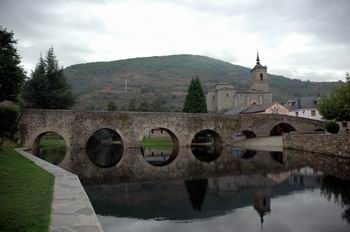 Campo est un village agréable déjà cité en 1080, il conserve comme unique source sa fontaine médiévale dans une niche à demi enterrée. La rue de sortie du village jusqu'au pont médiéval à arches romanes qui enjambe le rio Mascaron est bordée de galeries de bois. Sur la place centrale se situent plusieurs constructions en pierre de taille : chapelle, maison rectorale devenue auberge, puits. Son église Santa Maria de Viscayo en partie mozarabe est visible à 400m à gauche du chemin. Dans le faubourg Nord de Pontferrada, l'église Santo Tomas de las Ollas est à voir : elle témoigne de l'art mozarabe du Xe siècle avec les arcs outrepassés de son abside. "Le Castillo del Temple est impressionnant. Il fut construit par les templiers au XIIIe siècle (classé monument national); long de 162 m et large de 91m il possède des enceintes de pierre, des créneaux, tours et tourelles à mâchicoulis. La Torre del Homenaje (tour de l'hommage) date du XVe siècle. En dehors de ce château , le pèlerin pourra découvrir à droite de celui-ci l'église San Andrés baroque du XVIIe siècle (à l'intérieur , Cristo de las Maravillas = Christ des Merveilles du XIVe siècle) puis la basilique de Nostra Senora de la Encina (XVIe siècle -musée d'art religieux, tour baroque à quatre niveaux de colonnades). On passera ensuite sous la tour-porte de l'horloge datant du XVIe siècle. Vous découvrirez ensuite l'ayuntamiento, hôtel de ville baroque du XVIIe siècle puis le couvent des conceptionnistes (1542) enfin le ponte Ferrado ... Poursuivant votre route, vous arriverez à Columbrianos que l'on contourne et qui est dominé à gauche par un camp romain, retable baroque dans l'église du quartier Teso à trois nefs. a la sortie du bourg une chapelle à chevet plat et petit mur campanaire. A Fuente Nuevas, le quartier Los Huertos (les jardins) a une calle Real jacobite passant devant une chapelle du Christ Divin. Au centre, place du Pèlerin avec une fontaine du même nom (1991). Ce sera ensuite Cacabelos que vous atteindrez est qui une vieille localité recensée dès le Xe siècle, Fontaine et jolie chapelle San Roque (XVe) sur la place Saint Lazare. L'église paroissiale Nostra Senora de la Plaza est du XVIe siècle avec une abside du XIIe devenue chapelle et Vierge en pierre du XIIIe au- dessus de la porte. A la sortie de la cité après le pont, le sanctuaire néo-classique de Quinta Angustia flanqué de son hôpital rebâti au XVIIIe siècle sur l'emplacement de celui de 1199 (Pieta visible derrière la grille). Sur un curieux bas-relief polychrome de la porte de la sacristie, l'enfant Jésus et Saint Antoine jouent aux cartes ... Arrivé à Villafranca vous pourrez découvrir successivement : l'église de Santiago au portail historié du XIIe siècle et chevet d'un roman très pur puis un peu à droite, proche de la plaza Mayor, San Francisco possédant un portail roman du XIIIe siècle et un chevet gothique du XIVe Le château des Marquis (1490) a perdu ses tours pendant la guerre d'indépendance contre Napoléon. A sa gauche le couvent de la Anunciada, des sœurs franciscaines (1696) : portail italianisant, panthéon des Marquis de Villafranca; sépulture de San Lorenzo de Brindisi. L'ex-calle de l'Agua, aux pierres armoriées, est notamment bordée des palais de Torquemada et d'Albarez de Toledo ainsi que d'une chapelle, à sa droite, la collégiale Santa Marie de Cluniaco (XVIe) garde de ses origines "clunisiennes" une tour du XIIIe siècle. Au nord de la plaza Mayor se situe le couvent baroque de San Nicolas. Office du tourisme de l'étape : NR en savoir plus sur cette étape Hébergement recommandé :