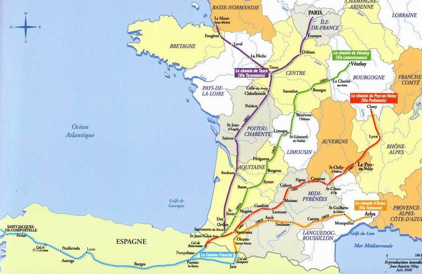 Carte tirée du livre "Sacrés Chemins de Saint Jacques de Compostelle - Editions Déclics".